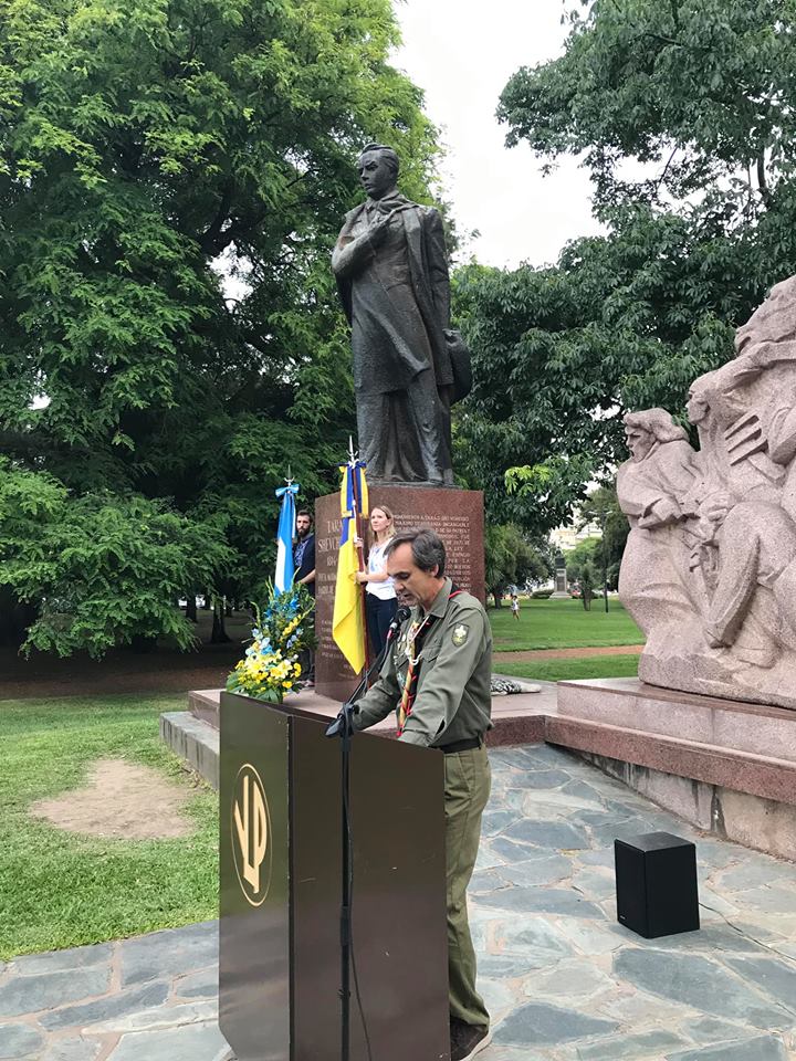 Від імені української громади в Аргентинській Республіці другий віце Президент Комісії Молодіжної Асоціації «Пласт» в Аргентині, пан Андрій Василик, розповів про велике значення дня єдності для української держави, і також підттвердив, що українці, які проживають за кордоном, продовжують допомагати своїй рідній країні.