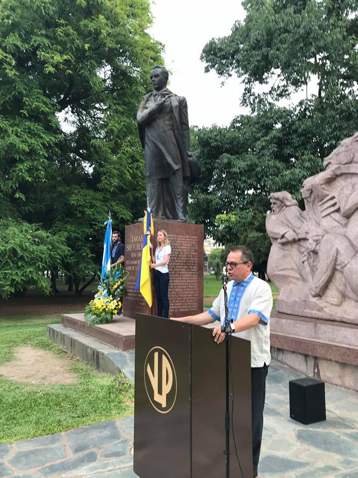 Відкрили акт Посол України в Аргентинській Республіці Магістр Юрій Дюдін, віце- Президент УЦР Дрa. Марія Зінько, Президент Верховної Ради Інж. Юрій Іваник, поклали квіти біля пам’ятника Тараса Шевченка. На відкриття акту виконали національні гімни, аргентинський та український.