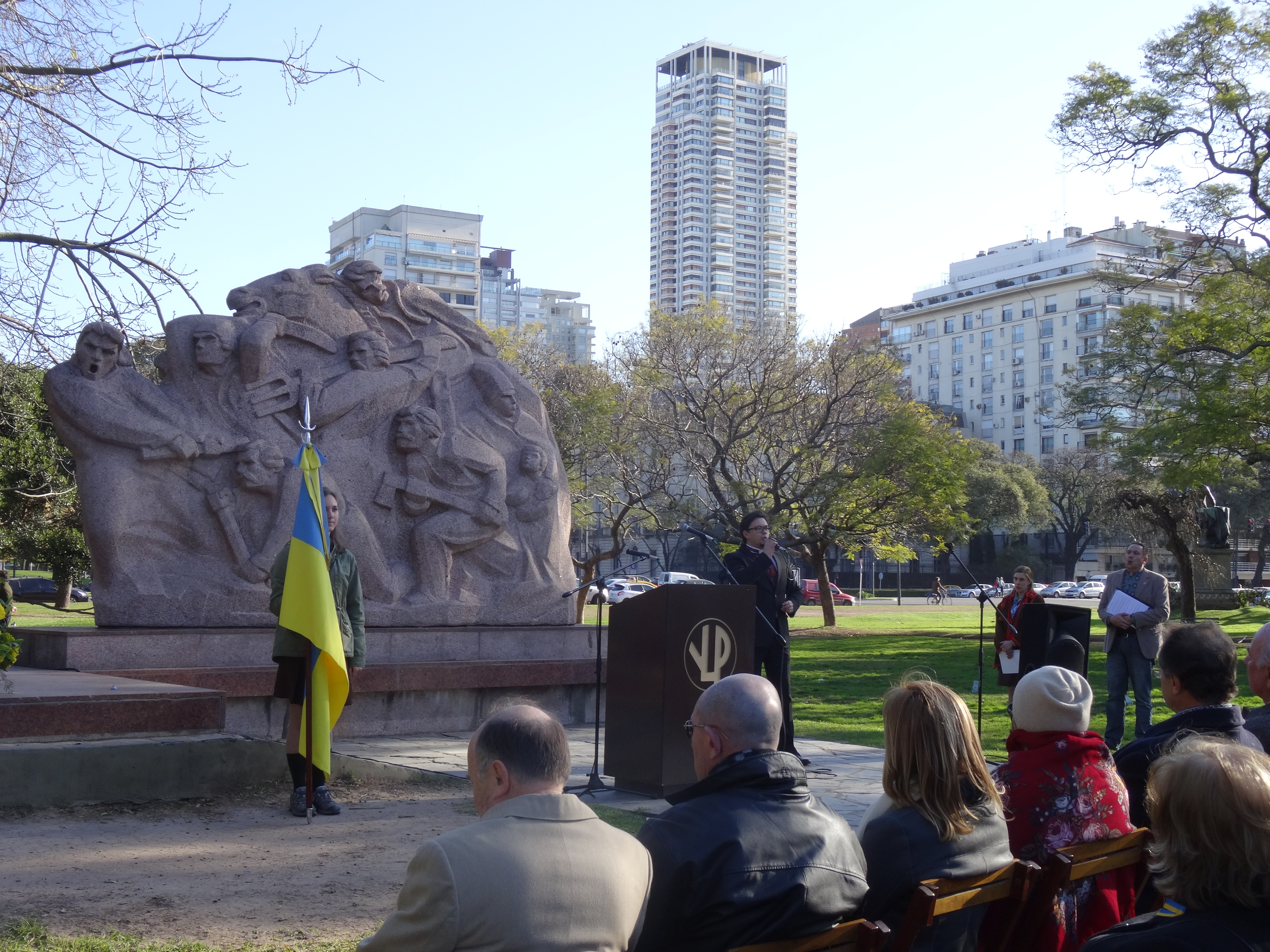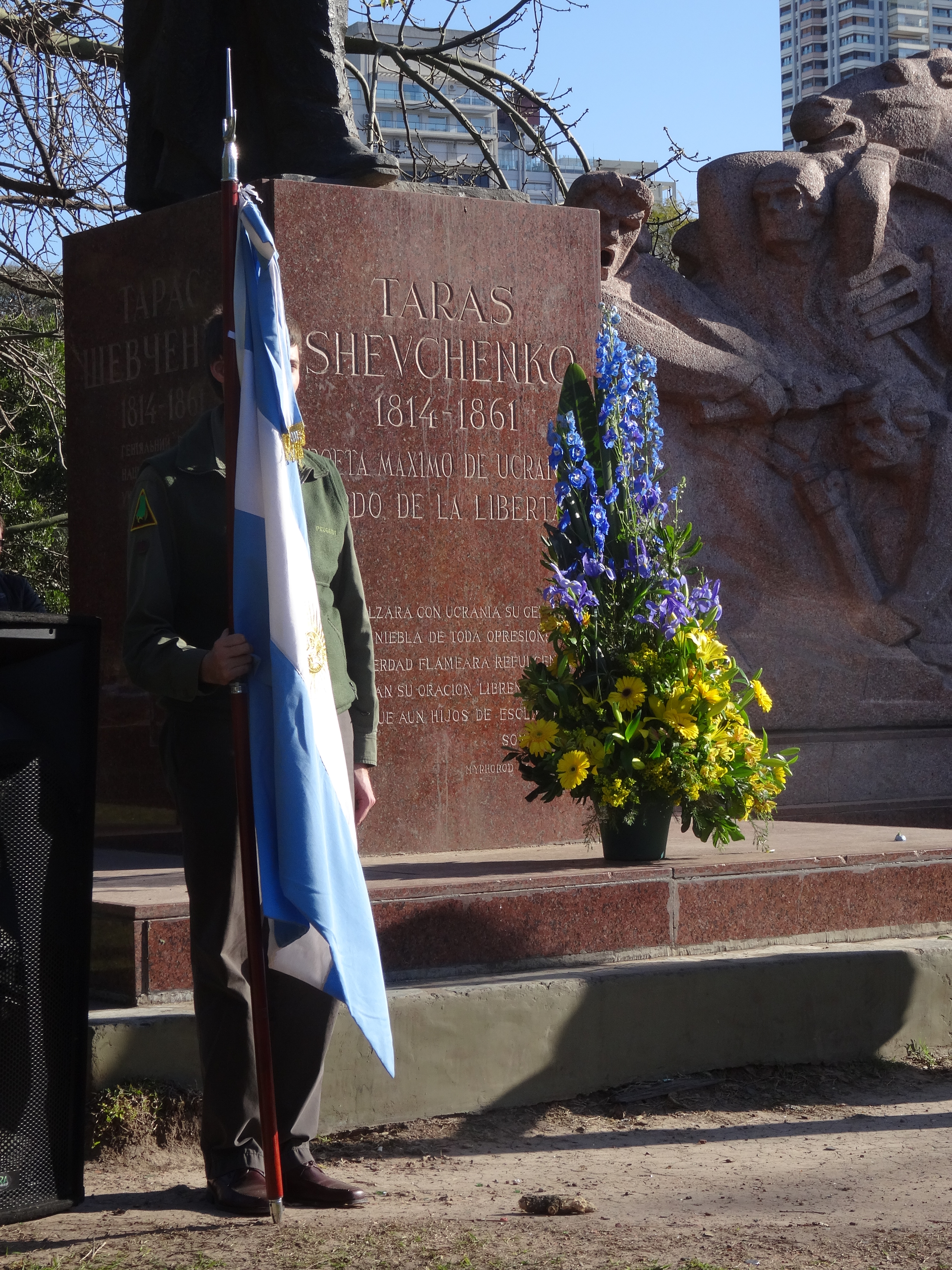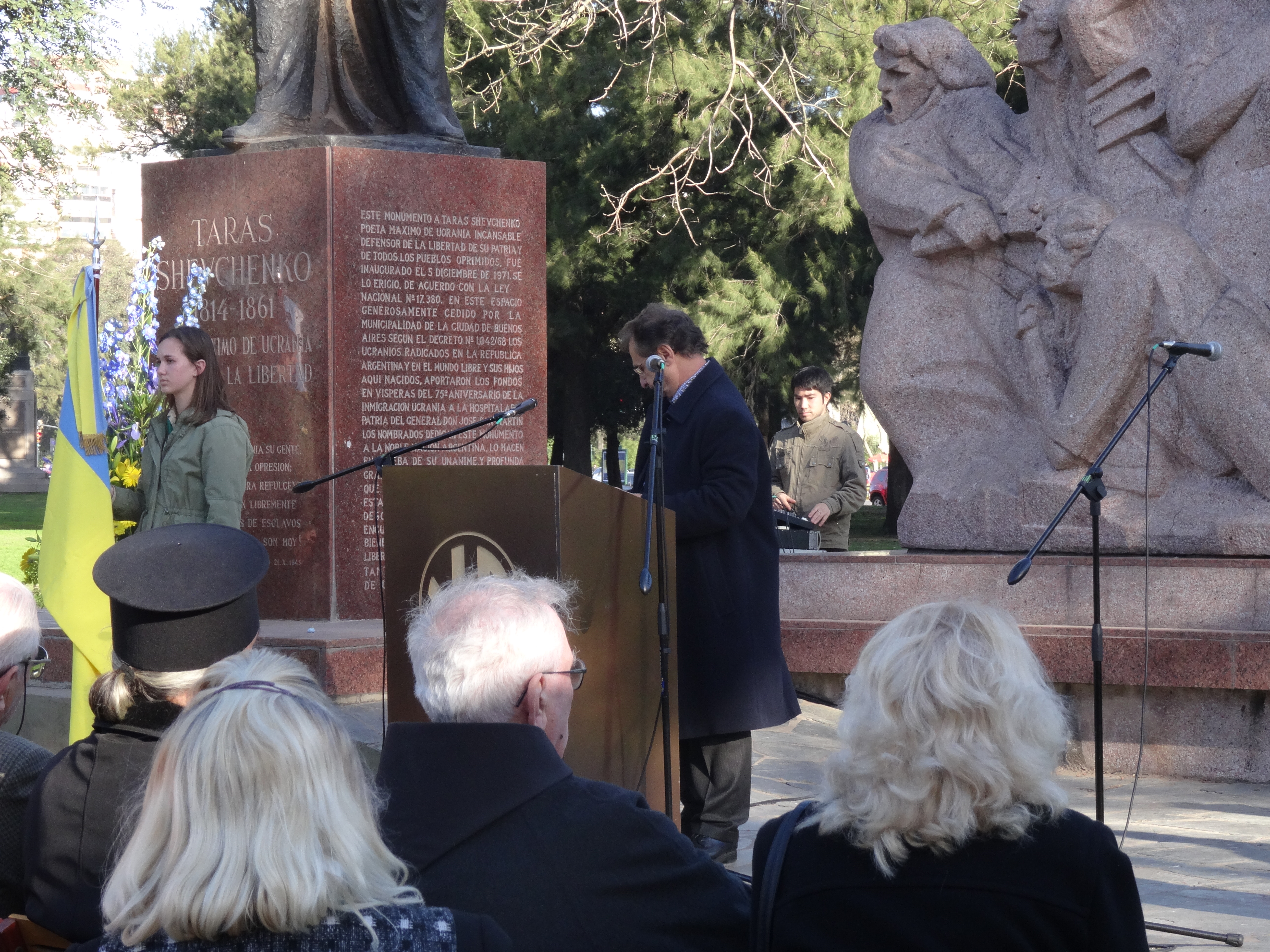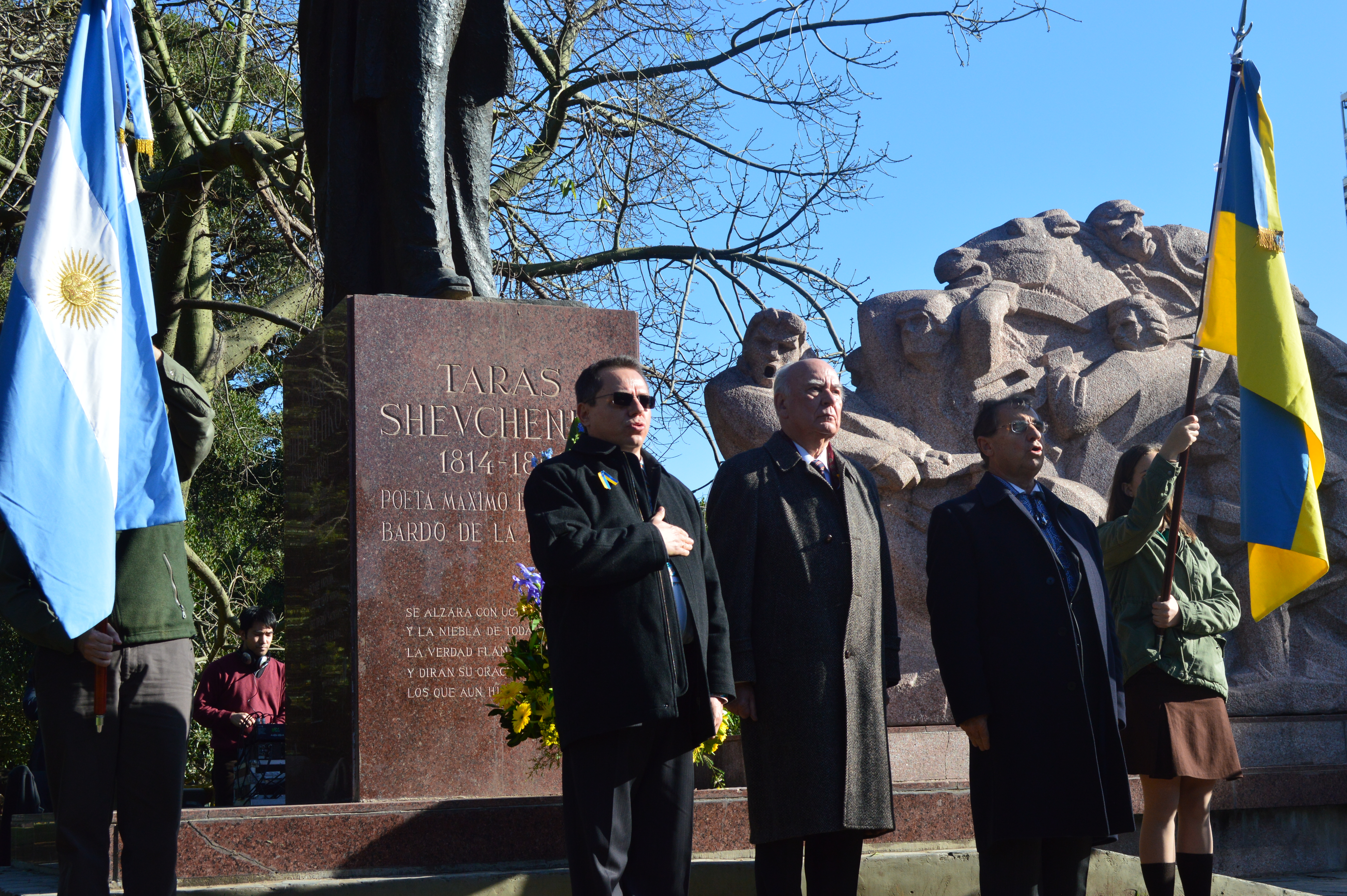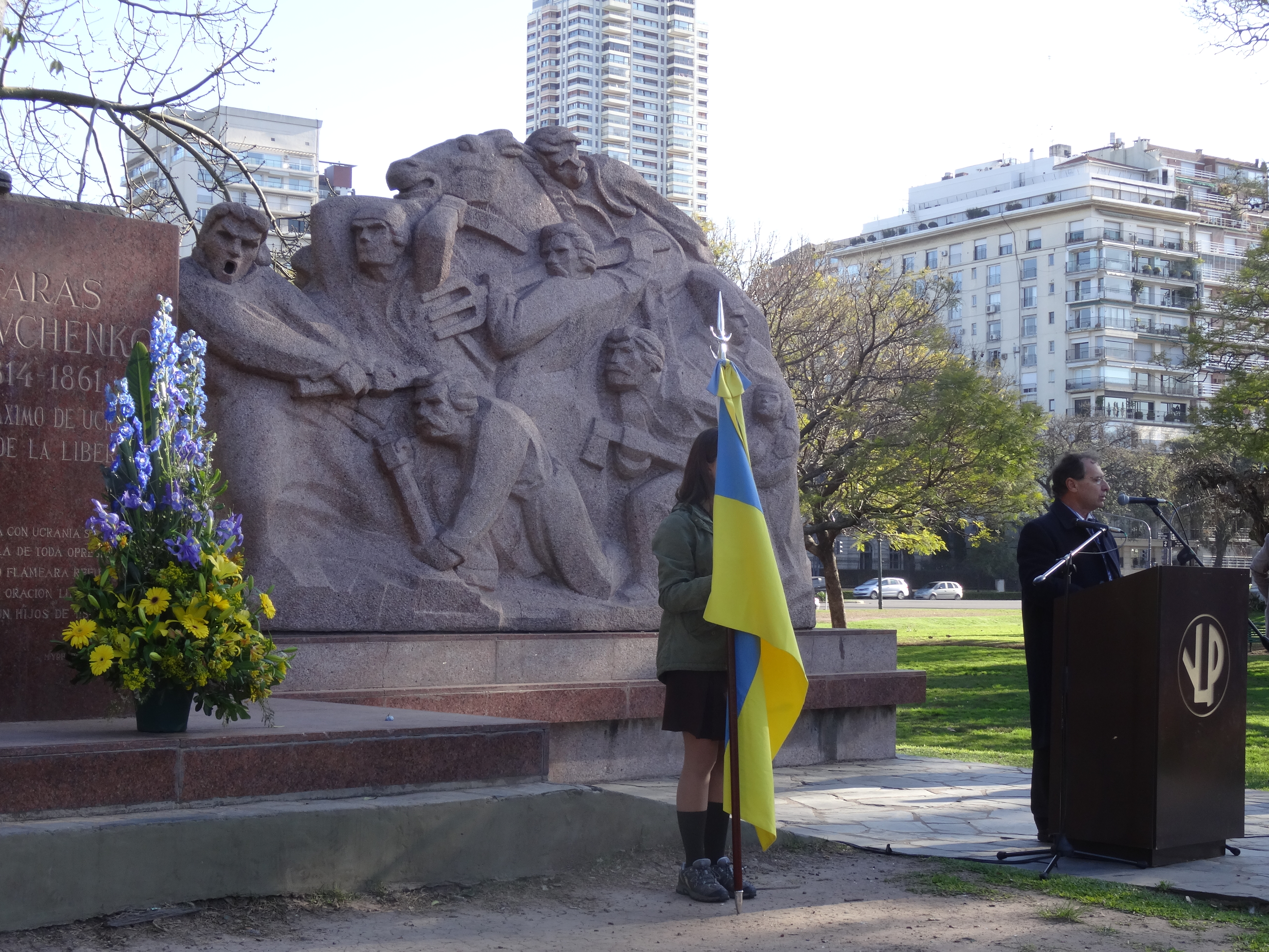 Acto conmemorativo frente al Monumento a Taras Shevchenko en el Parque Tres de Febrero, C.A.B.A.