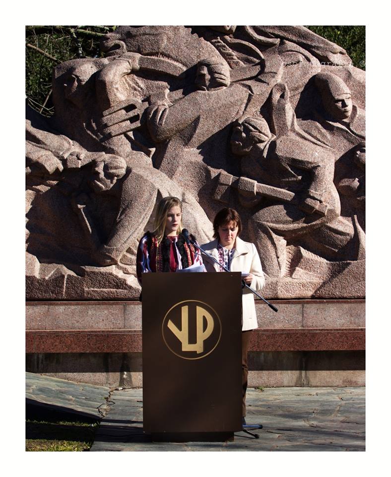 Після інтонації національних гімнів (аргентинського та українського), Радник Посольства України в Аргентинській Республіці Маргарита Арістова, у своїй промові сказала натхненні слова українською мовою, згадуючи за події, і попросила хвилину мовчання за всіх тих, хто померли за захист незалежності, свободи, суверенітету та територіальної ціліснoсті України.