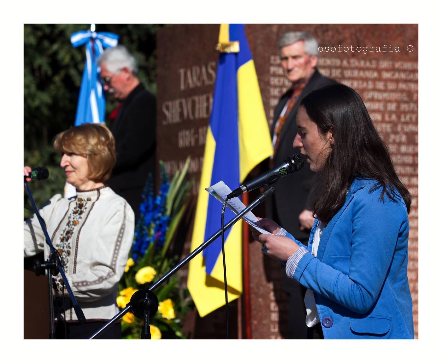 The ceremony started with the wreath-laying at the statue of Taras Shevchenko, by the Counselor of the Embassy of Ukraine in Argentine, Margarita Aristova; the President of the Superior Council, Jorge Iwanyk, Eng; and the Vice President of the Executive of the Central Representation Ukraine (RCU), Dr. María Cristina Zinko.
