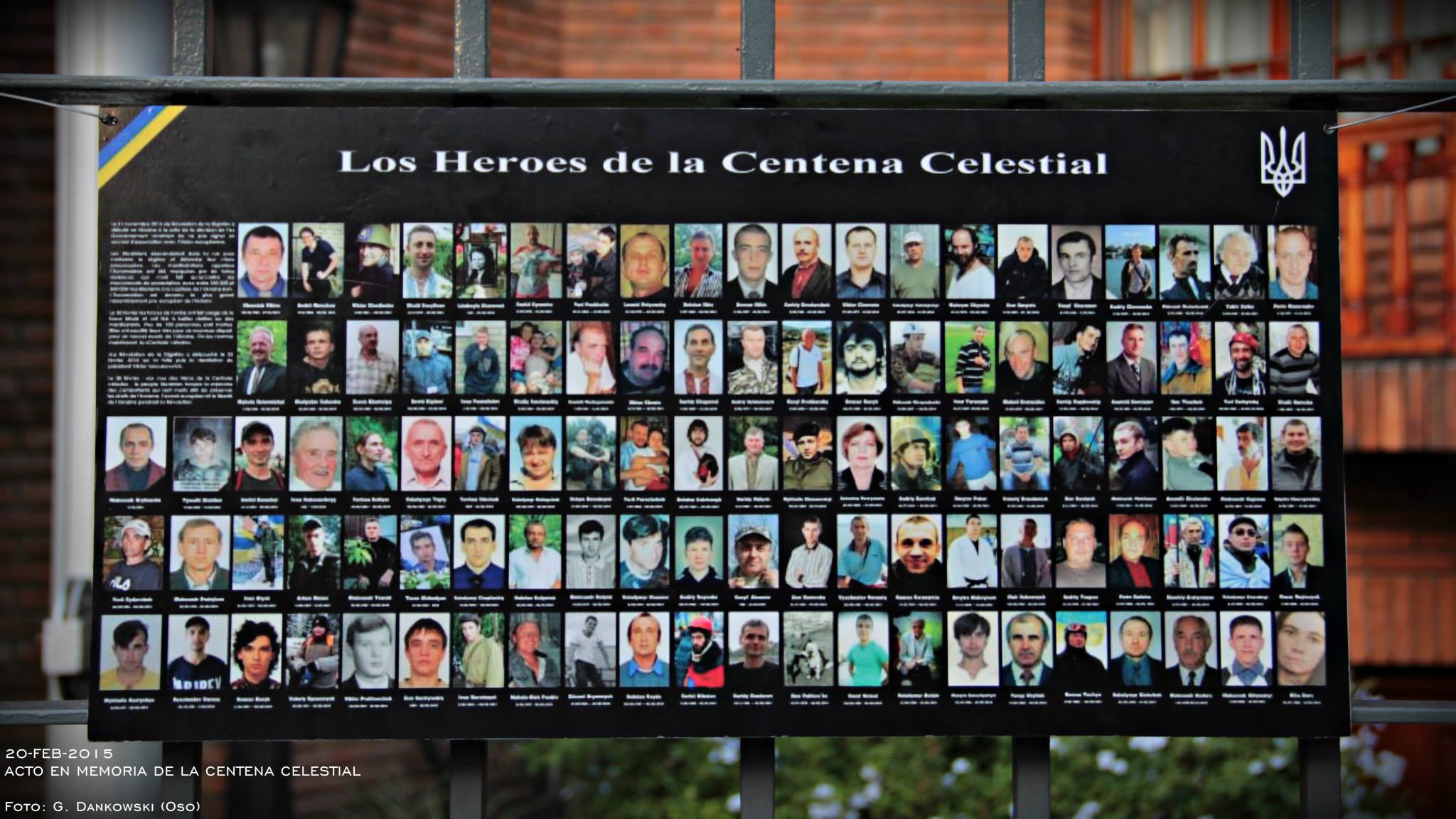 En la noche del 19 al 20 de febrero 2014, murieron los primeros cien héroes “la Nebesta Sotnia” Centena Celestial. Pero la Federación Rusa cuando no logró su objetivo de sojuzgar a Ucrania a través de un presidente títere de Putín, ha comenzando con los terroristas y con la invasión no declarada a Ucrania y ya hoy son miles las víctimas militares y civiles.