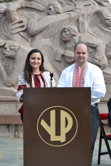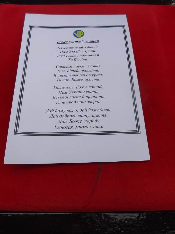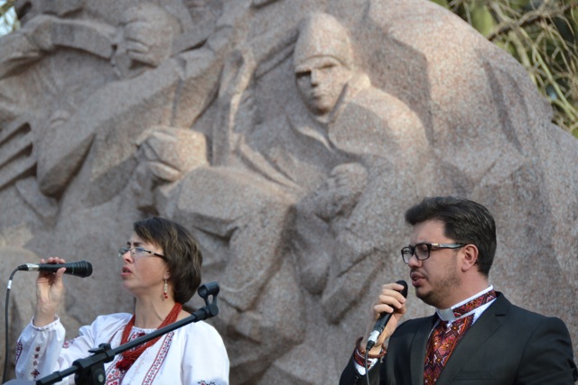 Finalizando el acto la profesora Natalia Shevchenko y el padre Nazariy Kasczak interpretaron la canción “Ucrania” de Taras Petrenenko y el himno espiritual de ucrania “Dios es Grande y único” escrito por Mykola Lysynko el padre de la música ucrania en 1885.