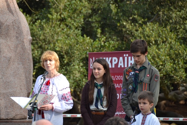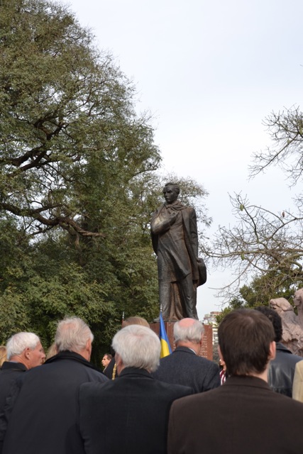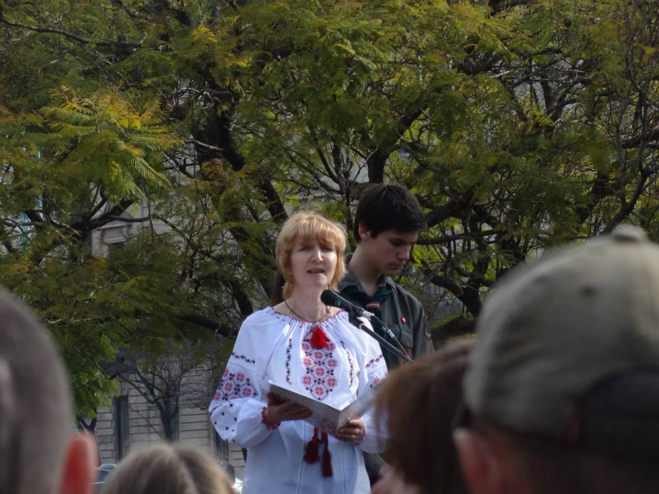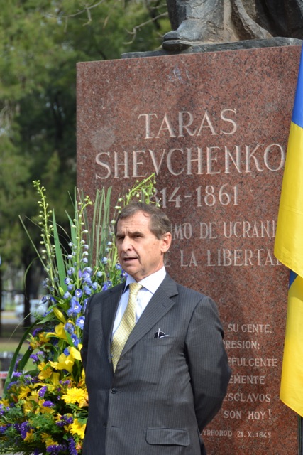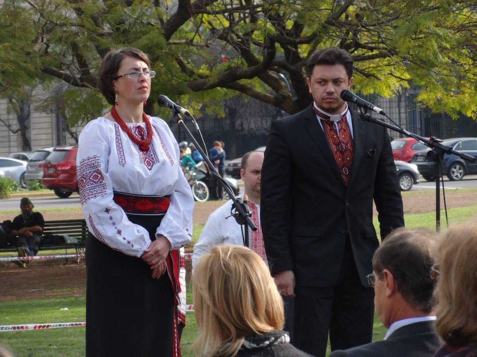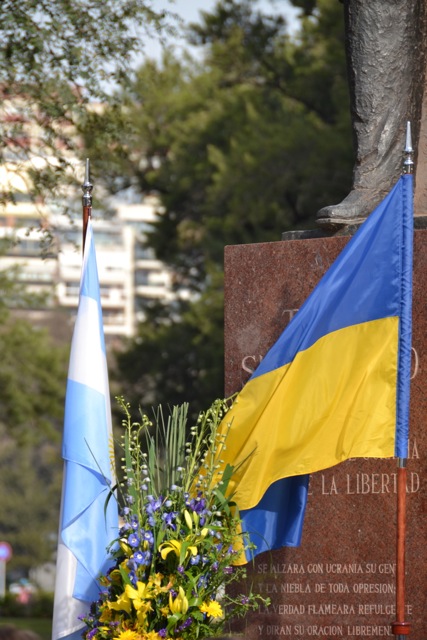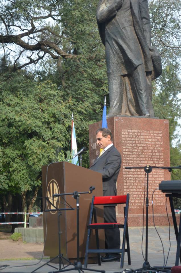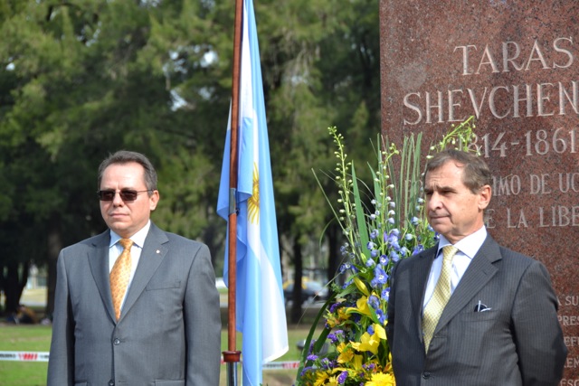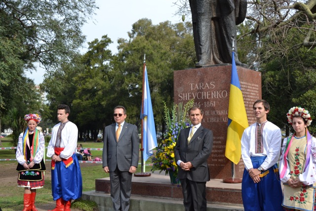 Se inició el acto con la colocación de una ofrenda floral a los pies del Monumento de Taras Shevchenko por el Prof. Dr. Pedro Lylyk y el Embajador Yurii Diudin, se entonaron las estrofas de los Himnos Nacionales de Argentina y Ucrania.
