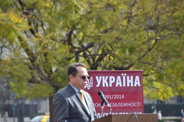 El señor Embajador Extraordinario y Plenipotenciario de Ucrania Yurii Diudyn se dirigió al público en relación a la conmemoración y la actualidad en Ucrania y manifestó que hoy Ucrania sigue luchando por la dignidad y los valores democráticos, que siempre a sostenido.