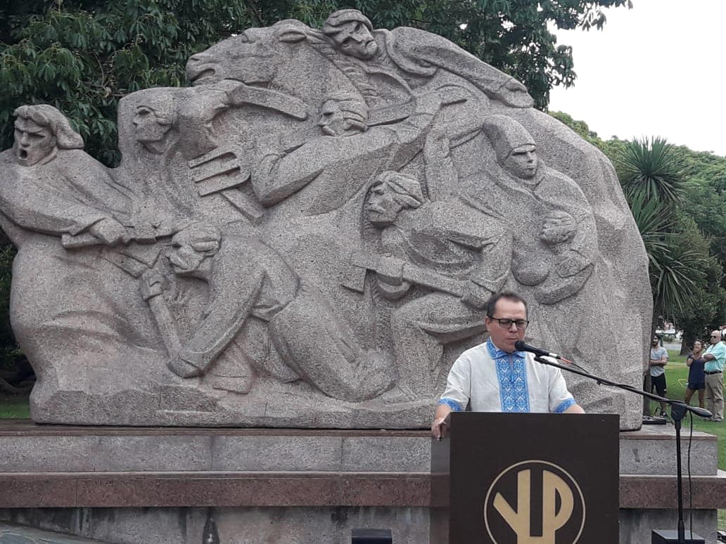 El Embajador de Ucrania dirigió a la audiencia un discurso, en el cual destacó la importancia del Acto de la Unión de la República Popular Ucraniana y de la República Popular de Ucrania Occidental el 22 de enero de 1919, en la historia de nuestro país. Destaco también la importancia en el camino de la independencia total de Ucrania la recepción en este año del Tomos de la Iglesia Ortodoxa Ucrania.