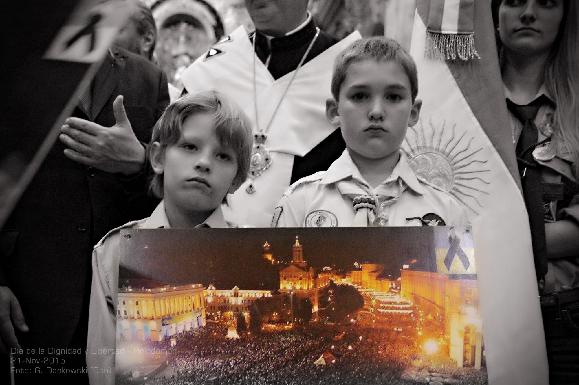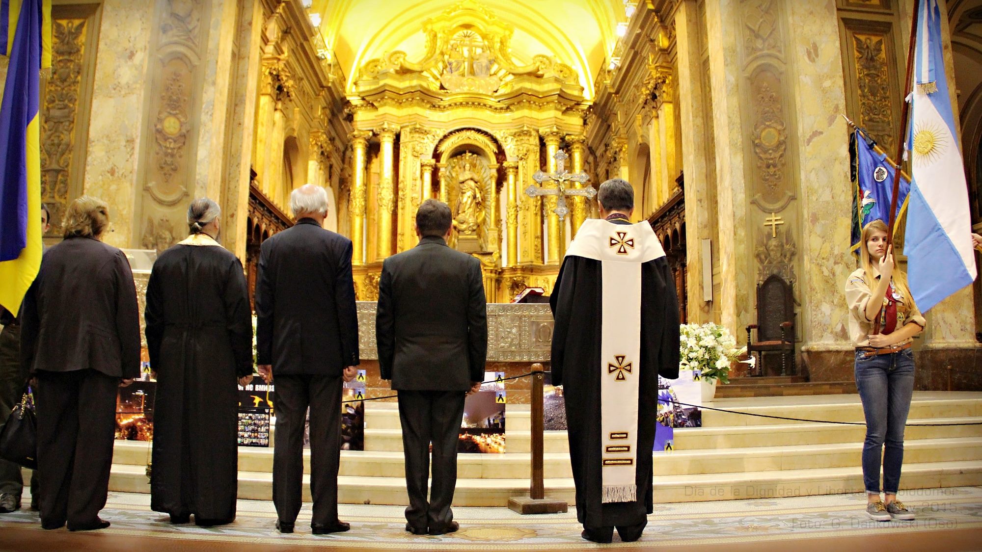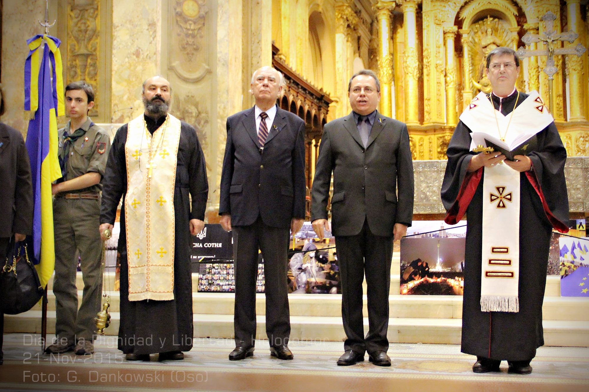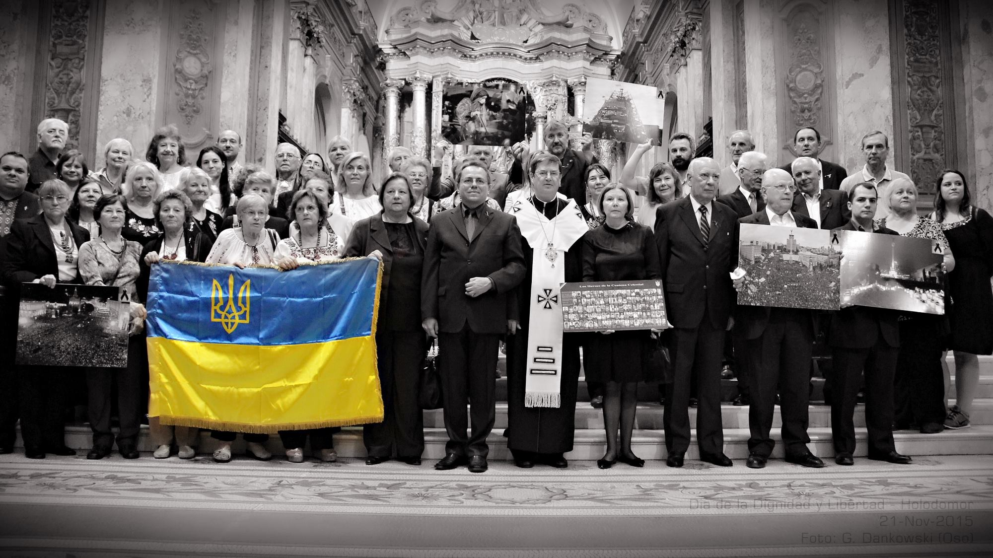 A continuación frente al Altar Mayor de la Catedral Metropolitana, se conmemoró el “Día de la Dignidad y Libertad” en Ucrania, recordando el segundo aniversario del inicio de la Revolución de la Diginidad en el Maydan. Cuando el pueblo ucranio se manifestó en contra de la decisión del ex presidente Yanukovych de no firmar los tratados que se venían negociando con la Unión Europea.