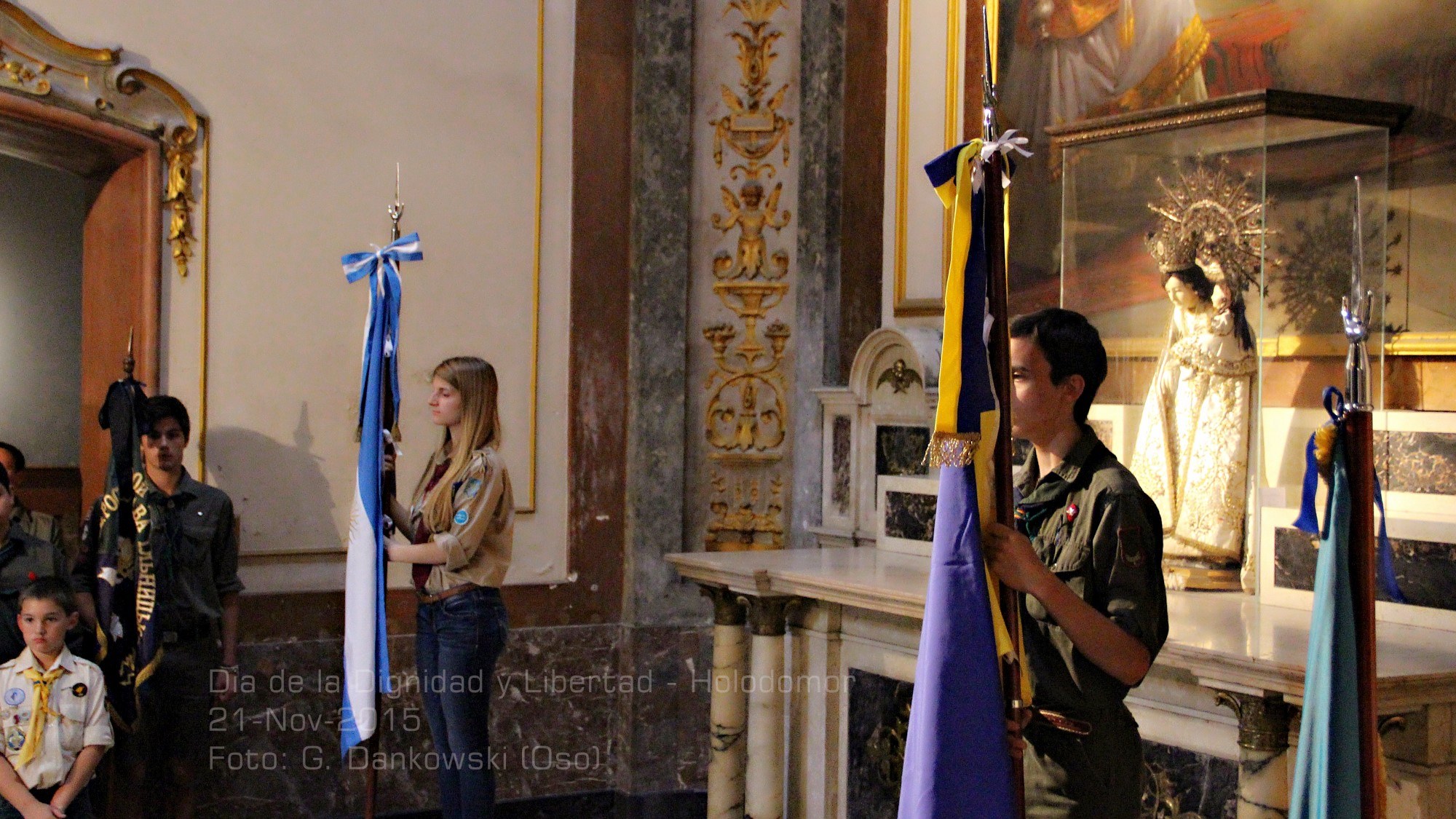Los jóvenes de la Asociación Juvenil Plast y Asociación Juvenil Ucrania SUM con sus uniformes y banderas, escoltaron los laterales de la Capilla. También estuvieron presentes los presidentes y representantes de todas las Instituciones Ucranias que componen la Representación Central Ucrania. Como así también los integrantes del cuerpo diplomático de la Embajada de Ucrania en la República Argentina.