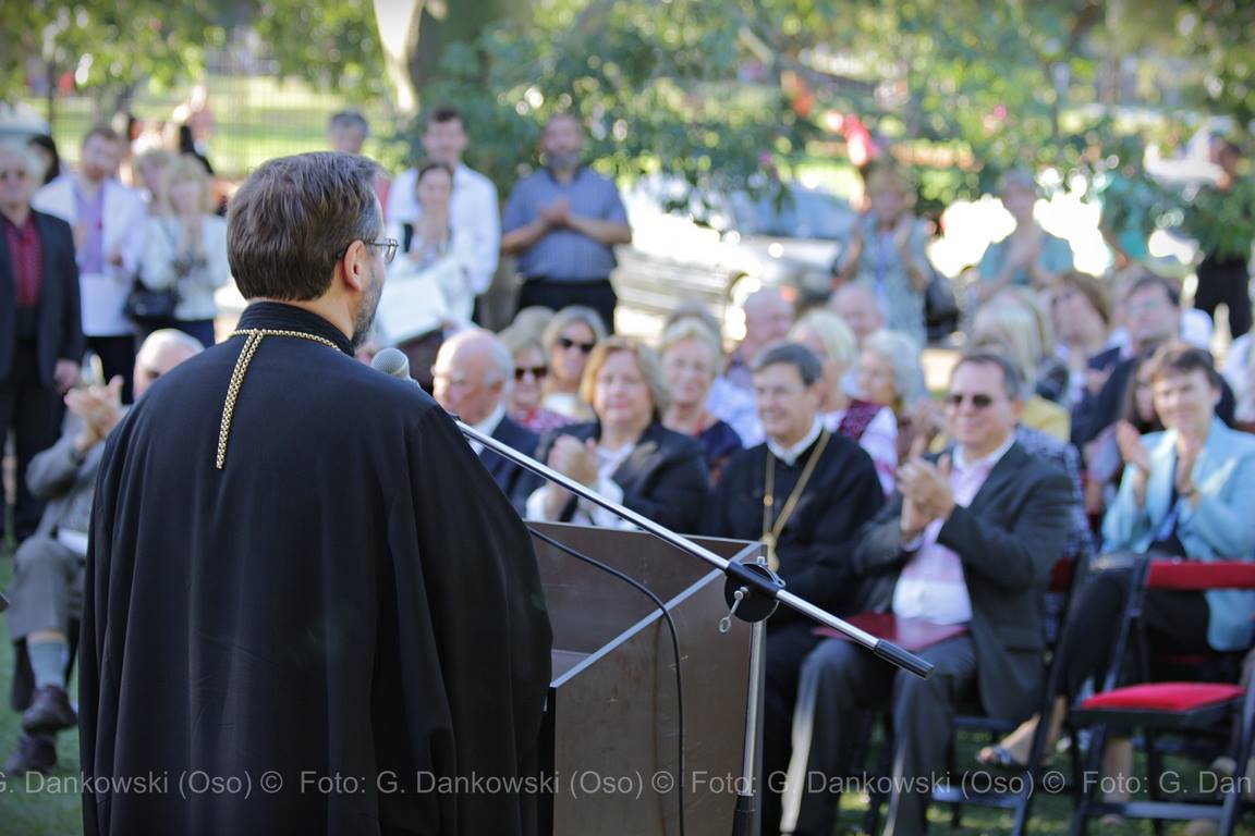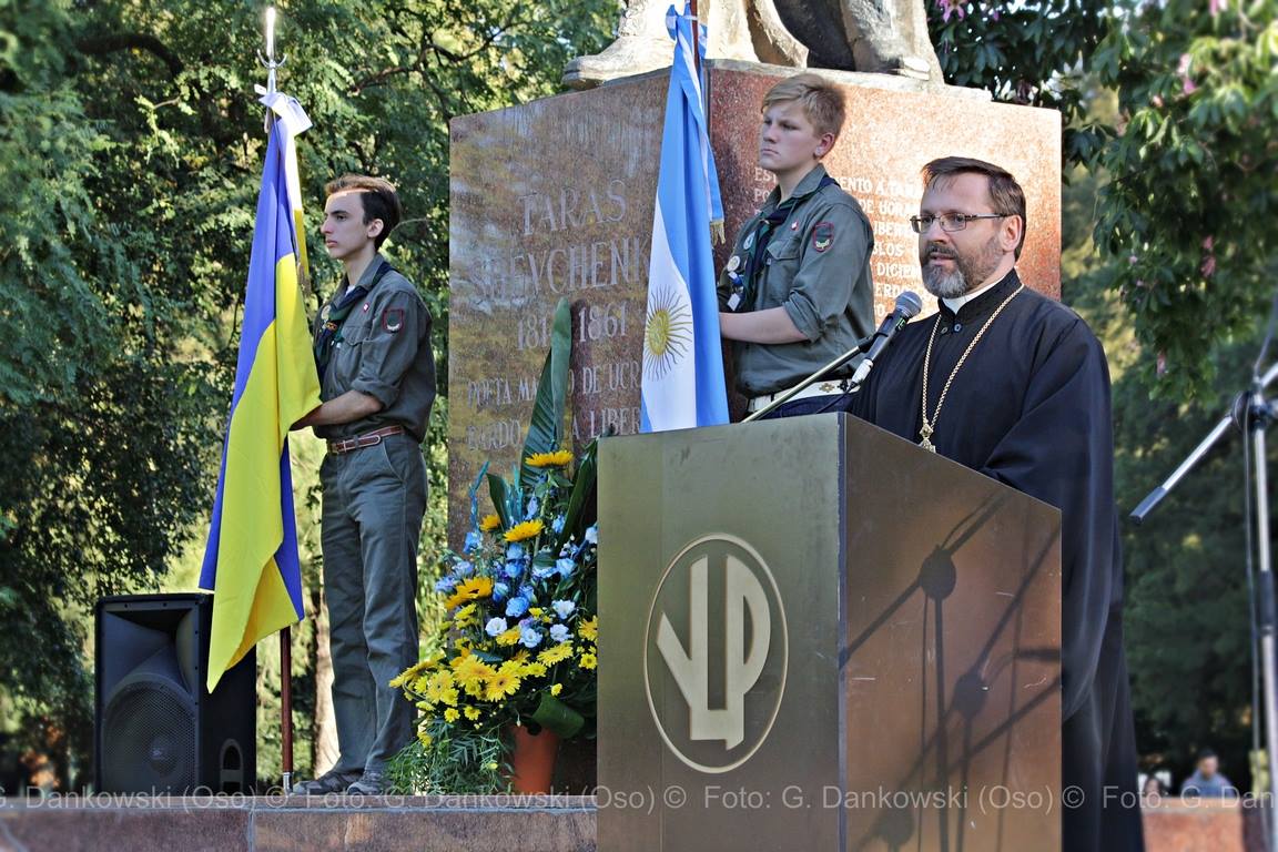 El acto fue organizado por la Representación Central Ucrania en la República Argentina, por la Fundación Tarás Shevchenko y por la Embajada Ucrania en la Argentina. Al inicio del festejo, el Embajador de Ucrania en la Argentina, Yurii Diudin, el Presidente del Consejo Superior de la Representación Central Ucrania (RCU), Ing. Jorge Iwanyk, y el Presidente de la Fundación Tarás Shevchenko, Ing. Iván Poloz, depositaron una ofrenda floral al pie del monumento al Gran Kobzar. Luego los participantes entonaron los himnos nacionales de la República Argentina y de Ucrania. Durante el evento el Patriarca Sviatoslav, el Embajador de Ucrania, Yurii Diudin, y el Vicepresidente de la Fundación Tarás Shevchenko, Miguel Kluba, se dirigieron a la audiencia con sendos discursos, en los cuales señalaron el destacado papel del Bardo y Profeta ucranio en el desarrollo del Estado Ucraniano, en la formación de la ideología nacional, cuya base es la Ucrania independiente y soberana.