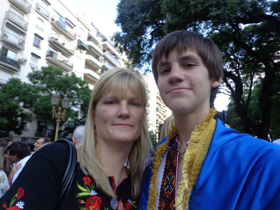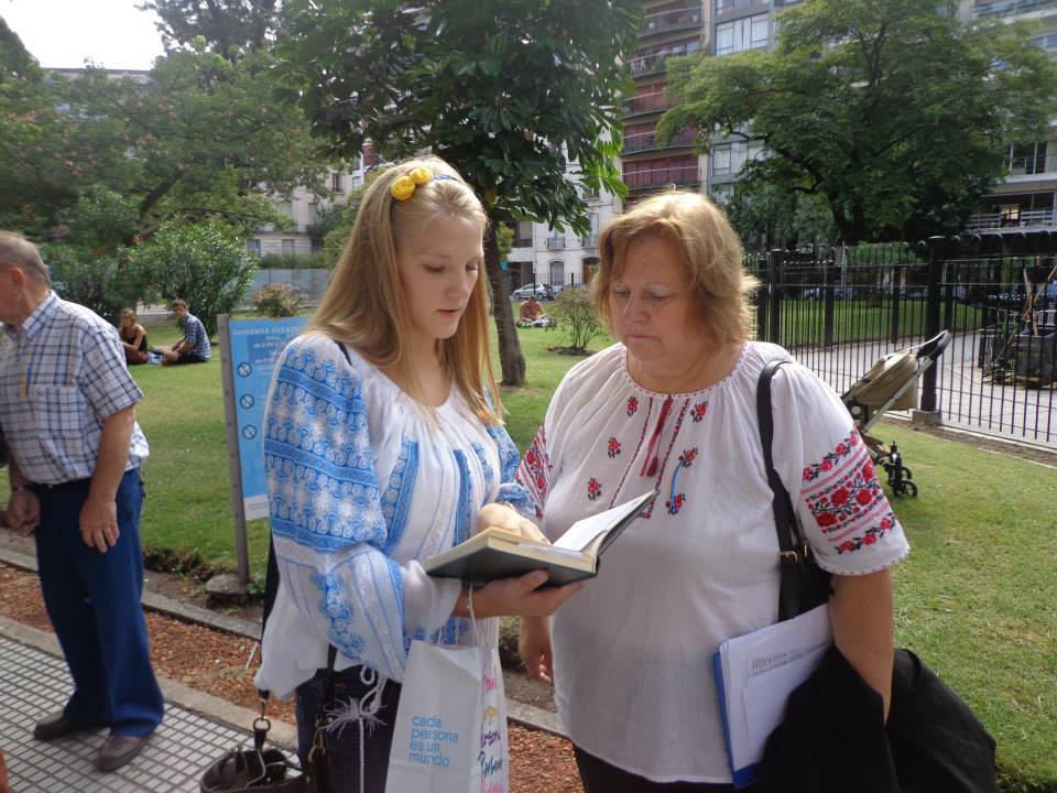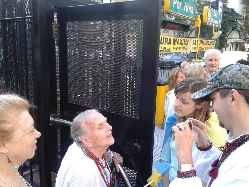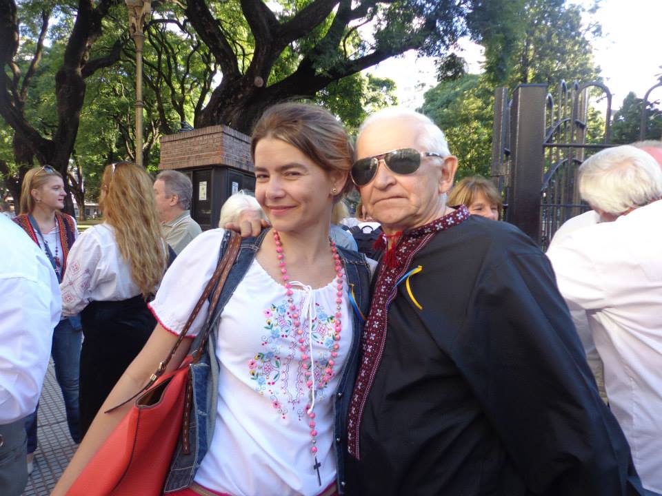 La señorita Camila Holyk de la Asociación Ucraniana Renacimiento, leyó unos versos del poema de Tarás Shevchenko “La Tumba saqueada” y sus sentimientos como joven, nieta de ucranios por los acontecimientos de dolor que vive Ucrania.
