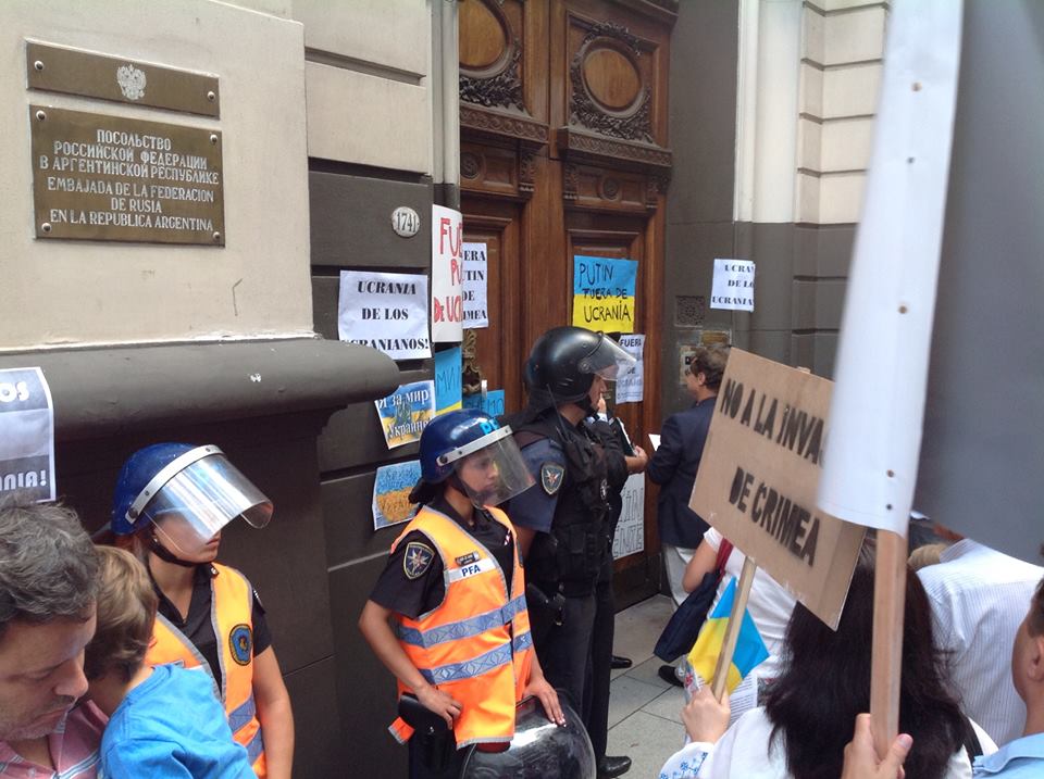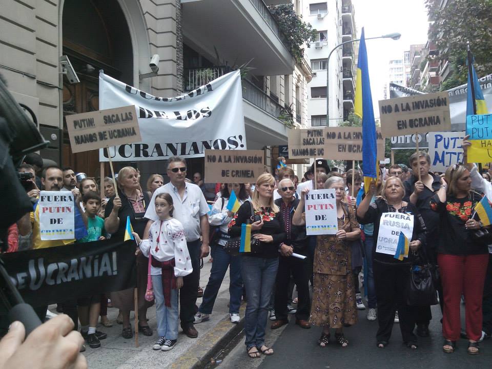 El día martes 4 de marzo de 2014 a las 16 horas, la Representación Central Ucrania de la República Argentina convoco a una marcha en defensa de Ucrania y no a la Invasión Rusa.