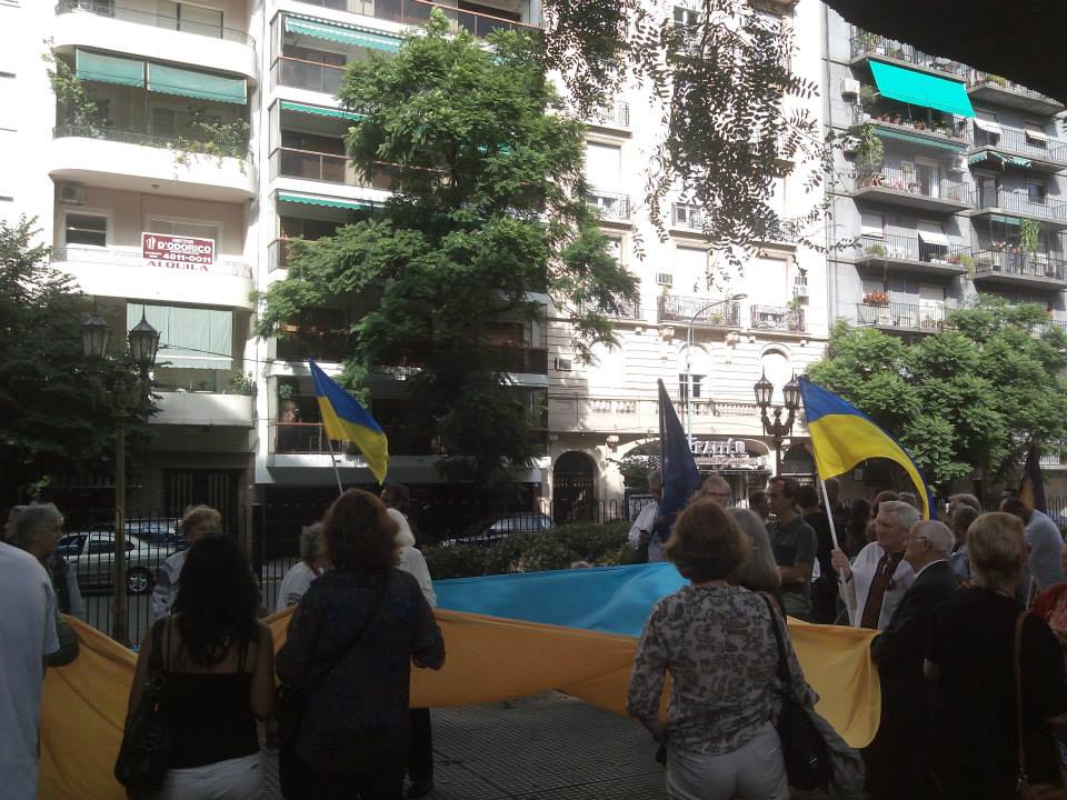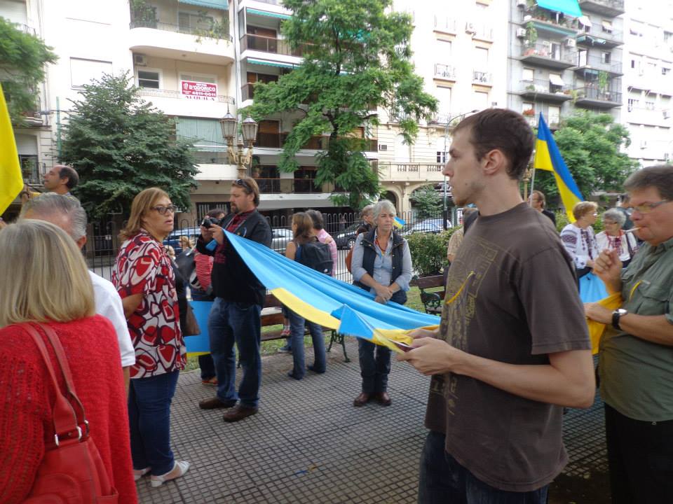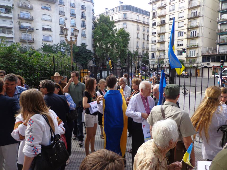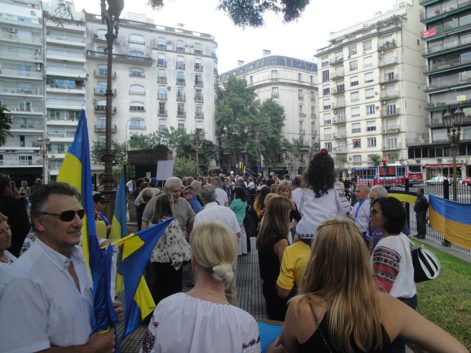 La convocatoria se realizó en la Plaza Vicente López de la Ciudad Autónoma de Buenos Aires donde se congregaron, alrededor de setecientas personas, los miembros de las organizaciones ucranias, amigos y simpatizantes de Ucrania.