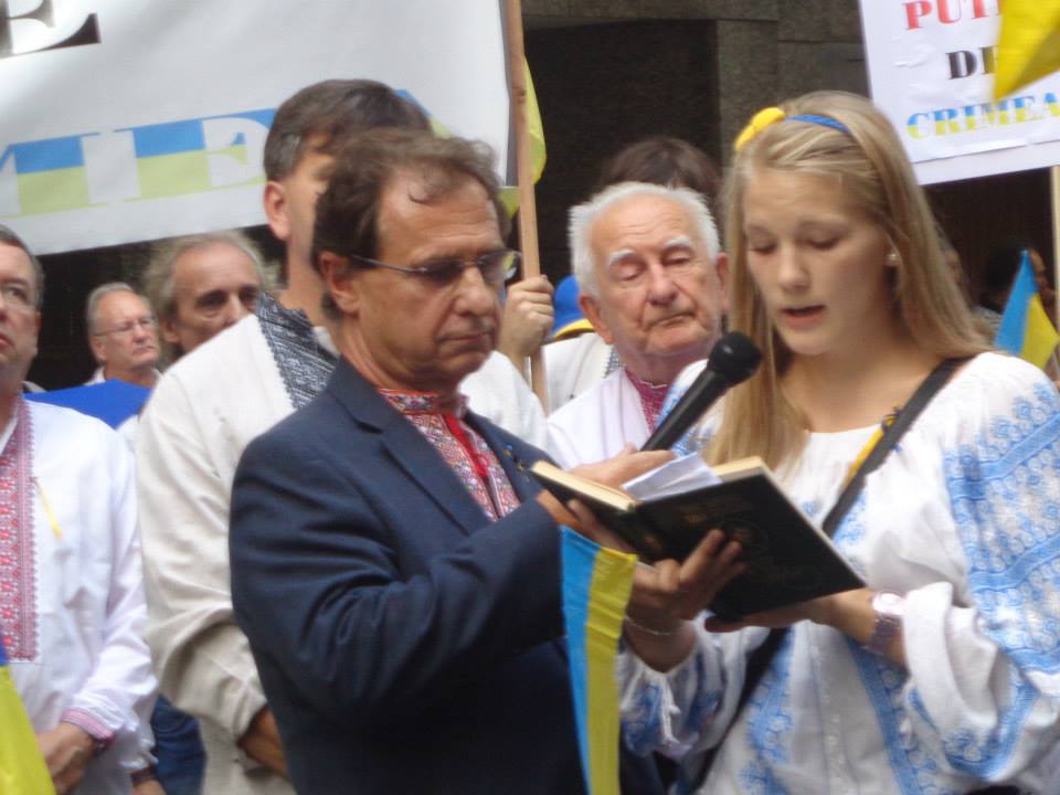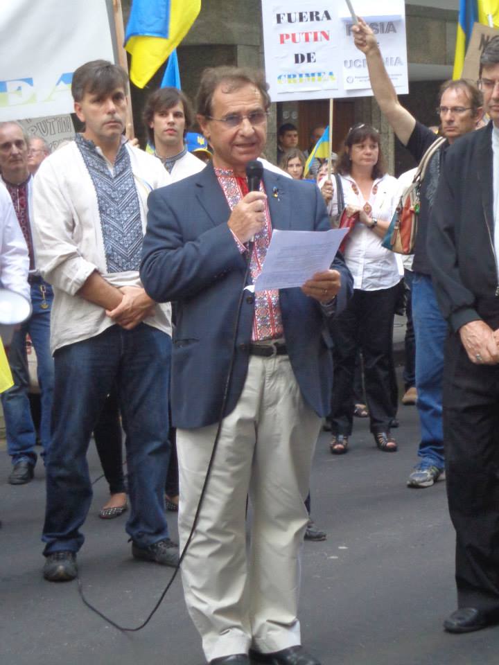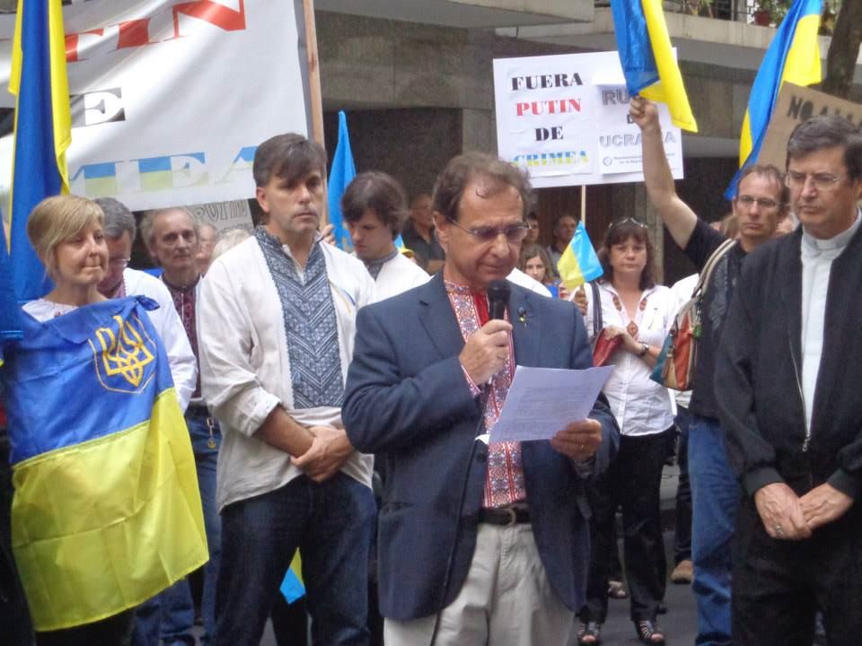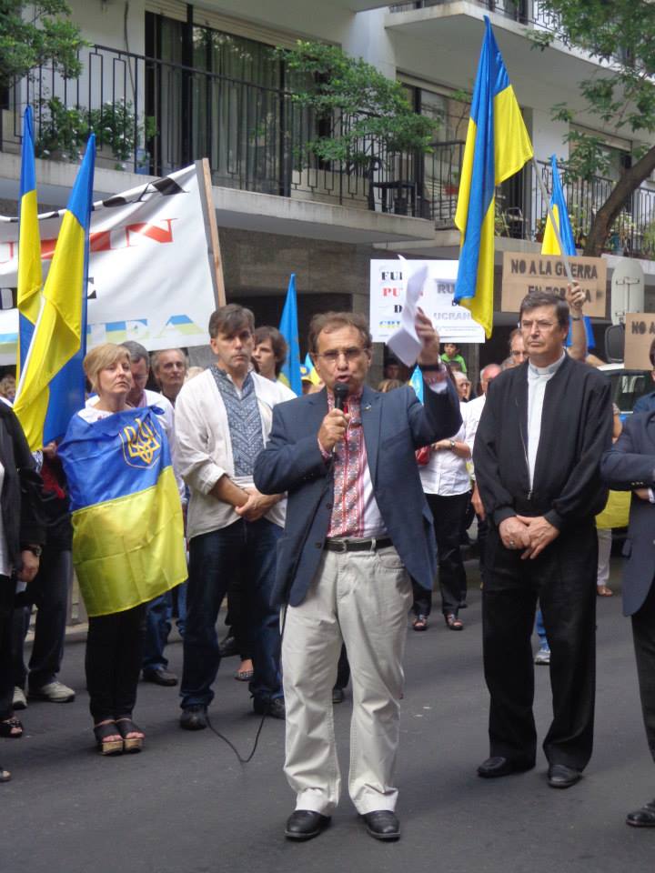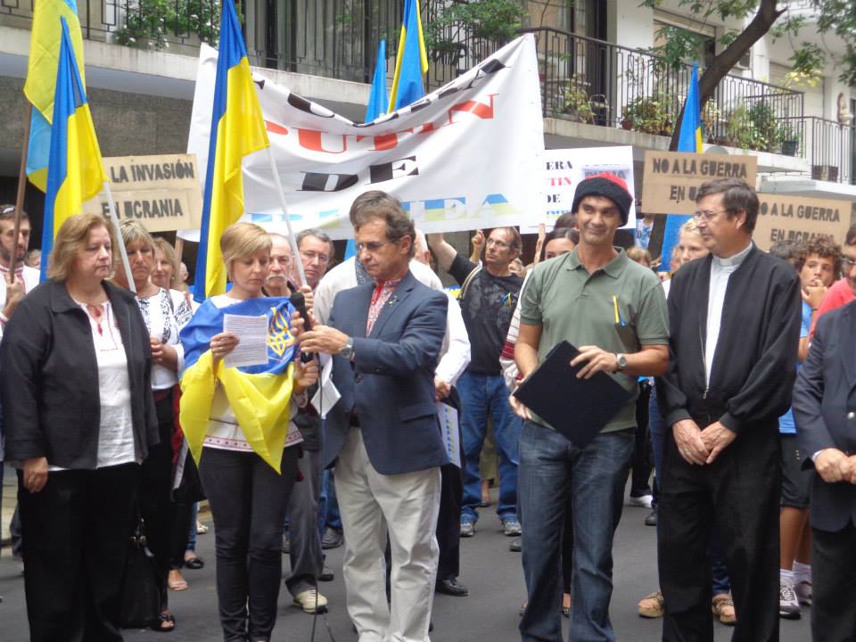 El señor Presidente de la Representación Central Ucrania de la República Argentina (RCU) el Prof. Dr. Pedro Lylyk dirigió sus palabras al Embajador de Rusia, repudiando las acciones de su país en contra del pueblo de Ucrania, expresó que “exigimos una Ucrania Libre Soberana” que “Rusia siempre bajo el mismo pretexto de proteger a los rusos invade” y agregó “Ucrania es un país pacífico, respeta a todos los ciudadanos de la nación”