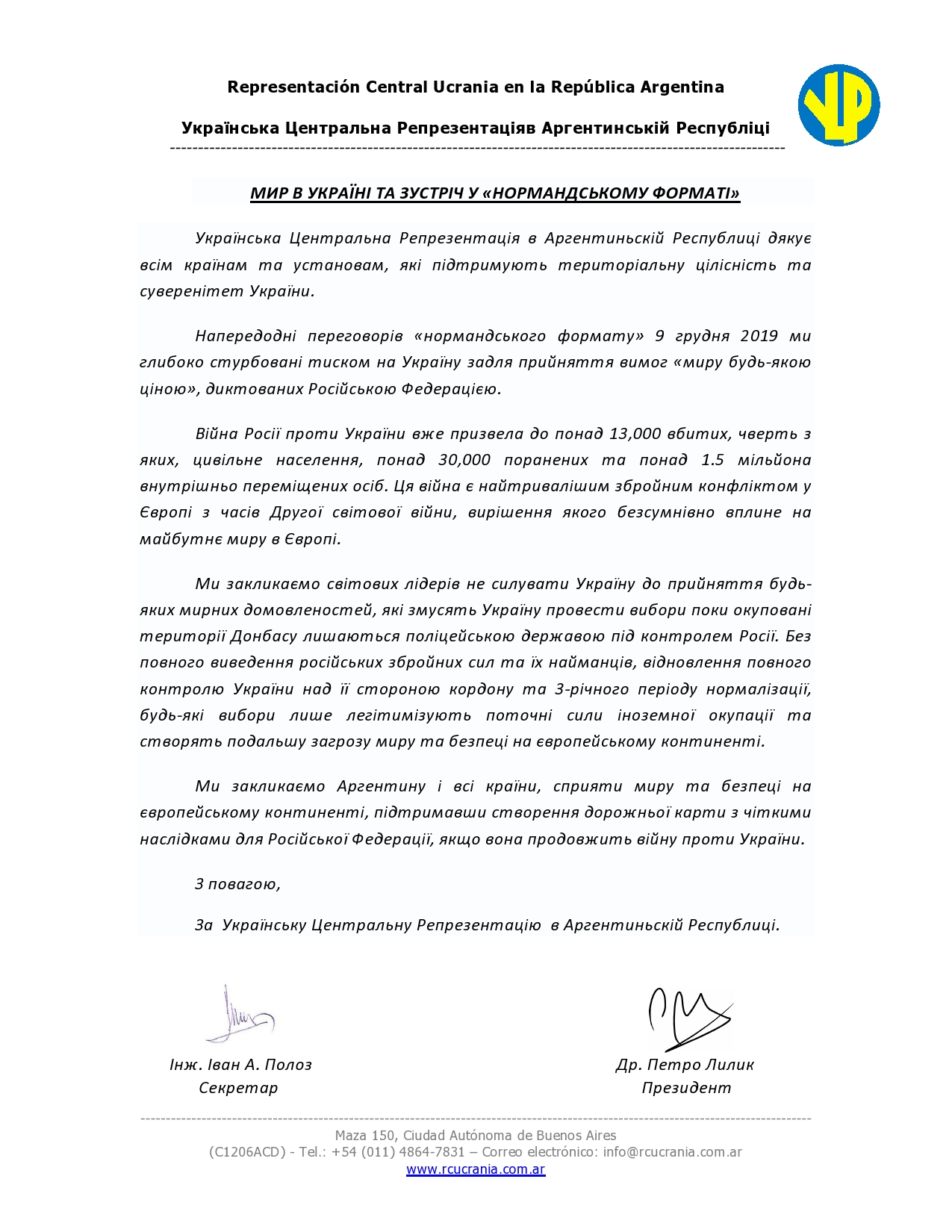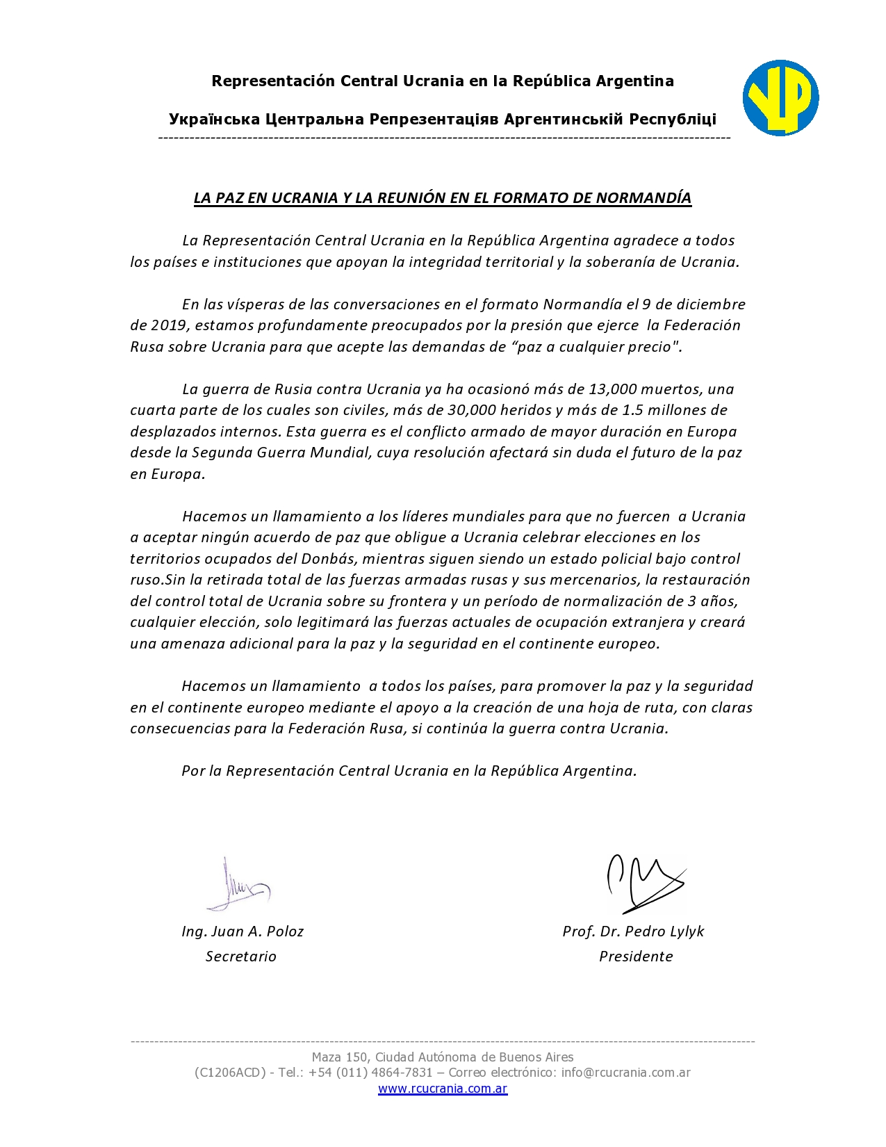 Navegación de entradas HOLODOMOR en La Legislatura del Gobierno de la Ciudad de Buenos Aires SEGUNDO COMUNICADO DE LA REPRESENTACIÓN CENTRAL UCRANIA
