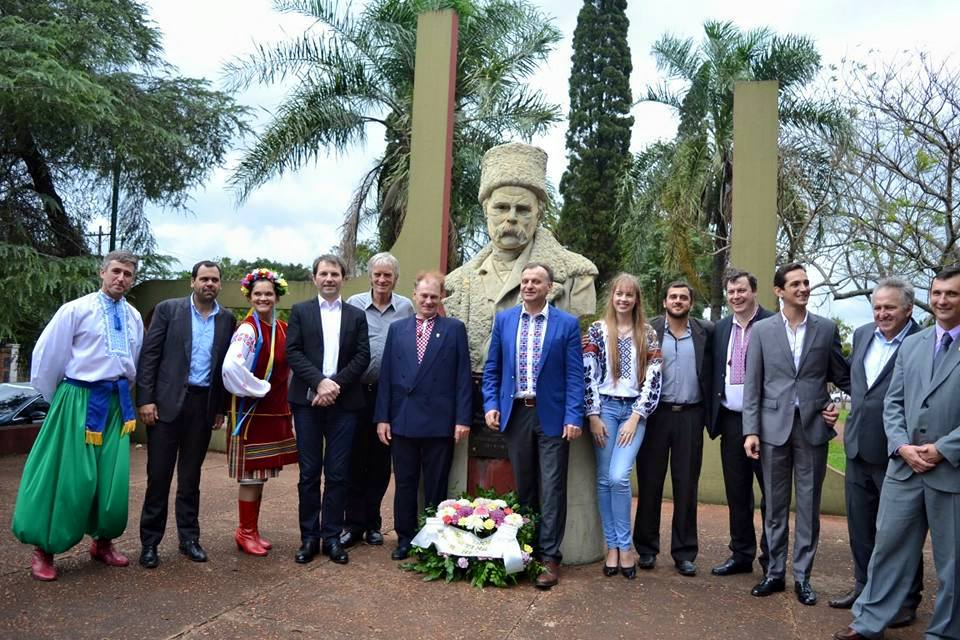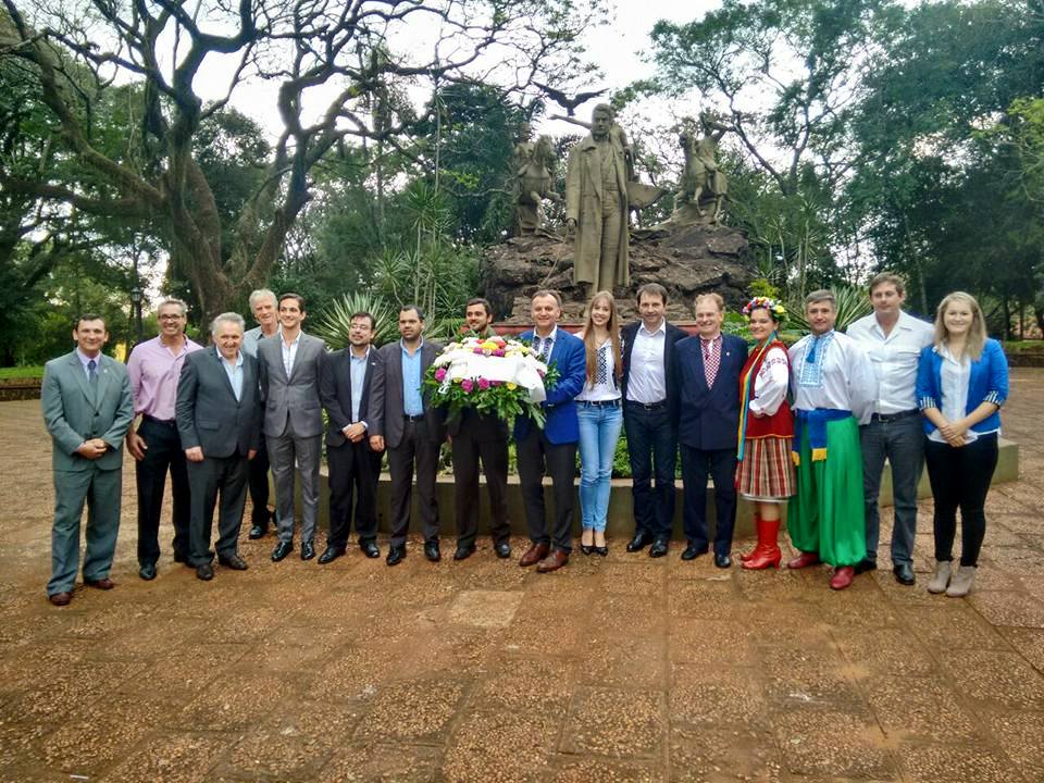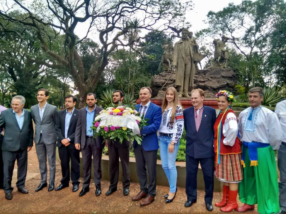 En horas del mediodía la Delegación acompañada por los representantes del Gobierno Local, Colectividad y empresarios, depositaron Ofrendas Florares a los pies del Monumento del Gral Jose de San Martin y Tarás Shevchenko, en nombre del gobierno de ambos países.