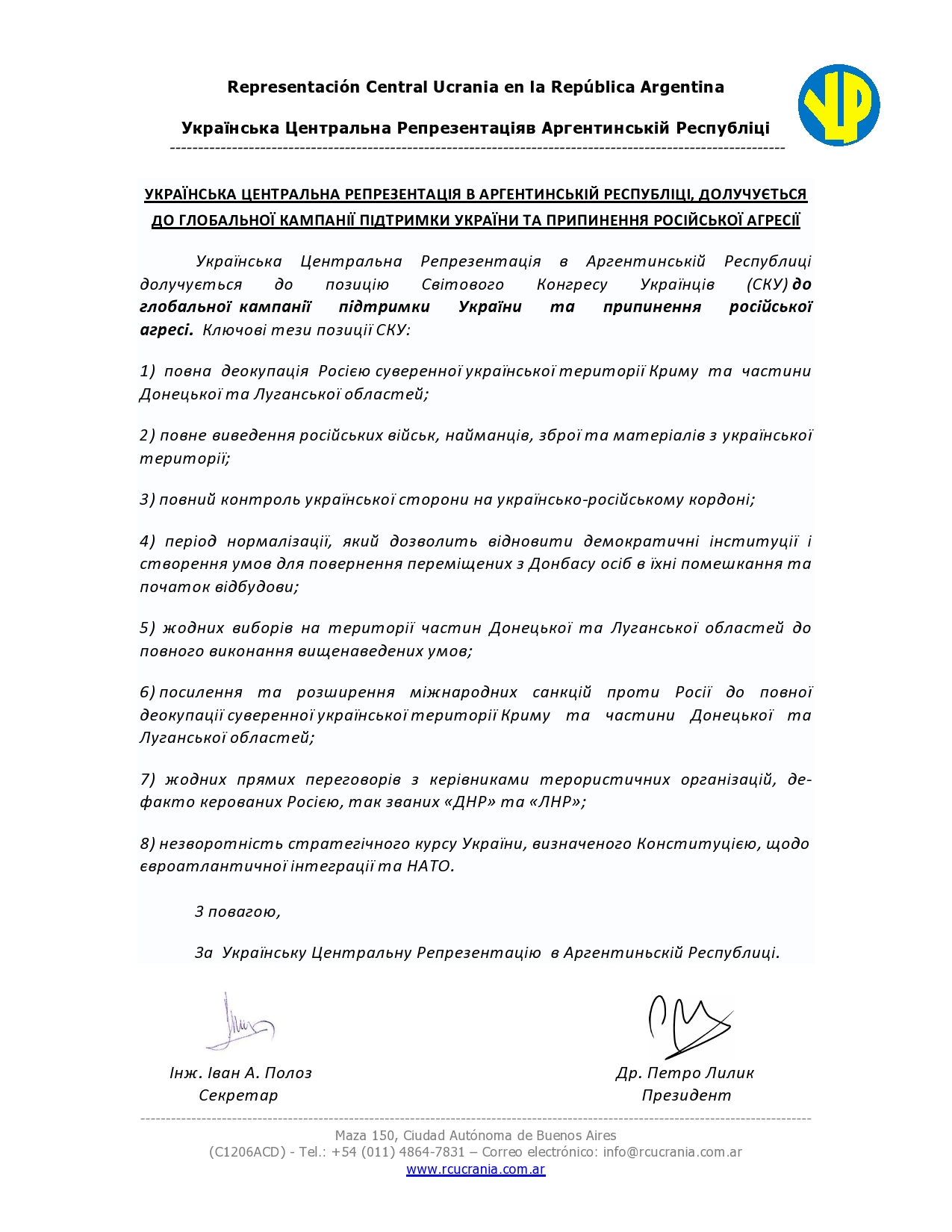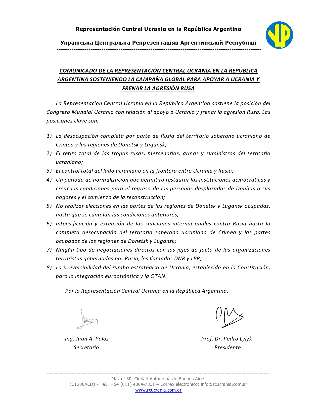 Navegación de entradas PRIMER COMUNICADO DE LA REPRESENTACIÓN CENTRAL UCRANIA Христос Воскрес! Felices Pascuas!